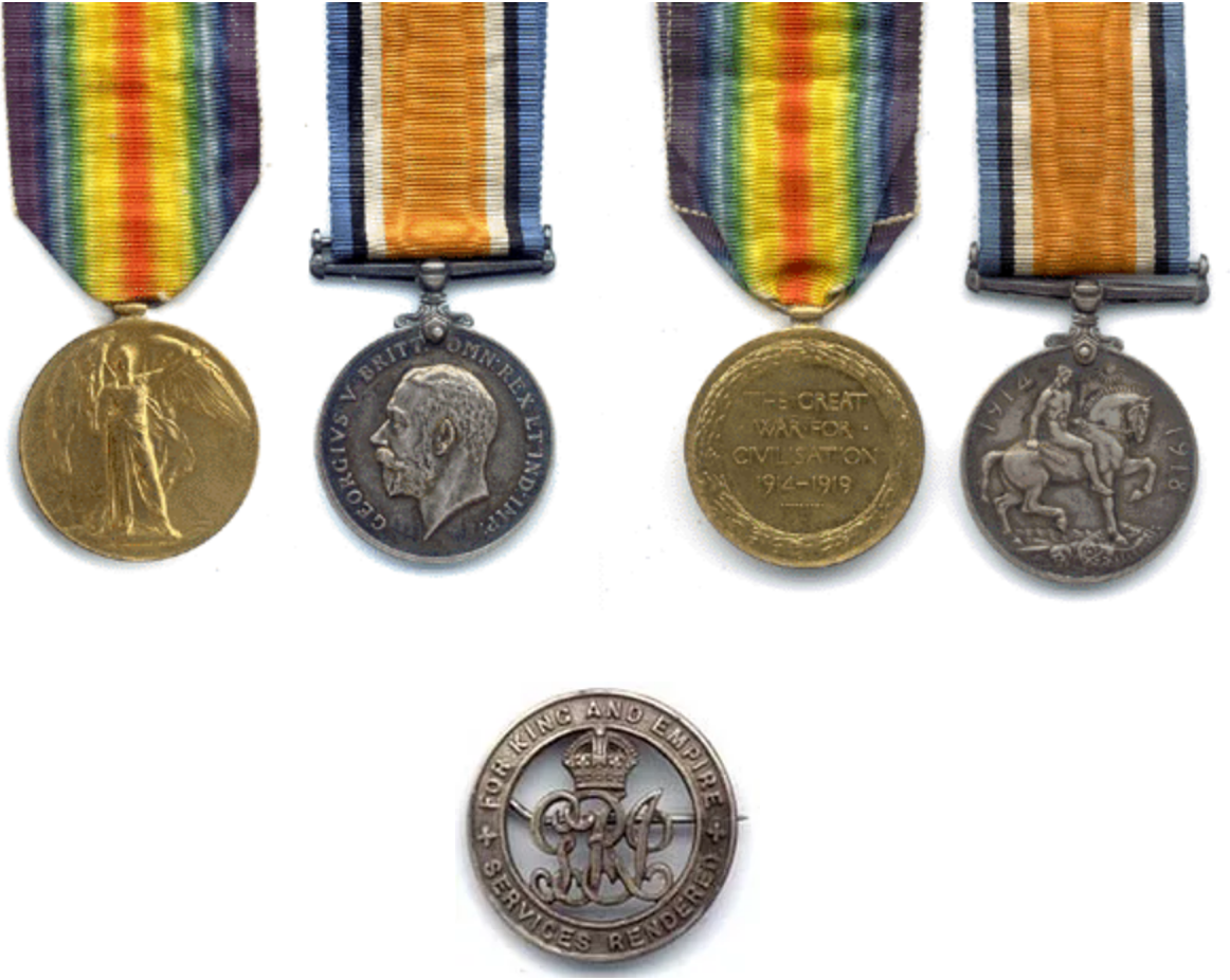 (Victory Medal, British War Medal, Army Class 'B' Service Badge)